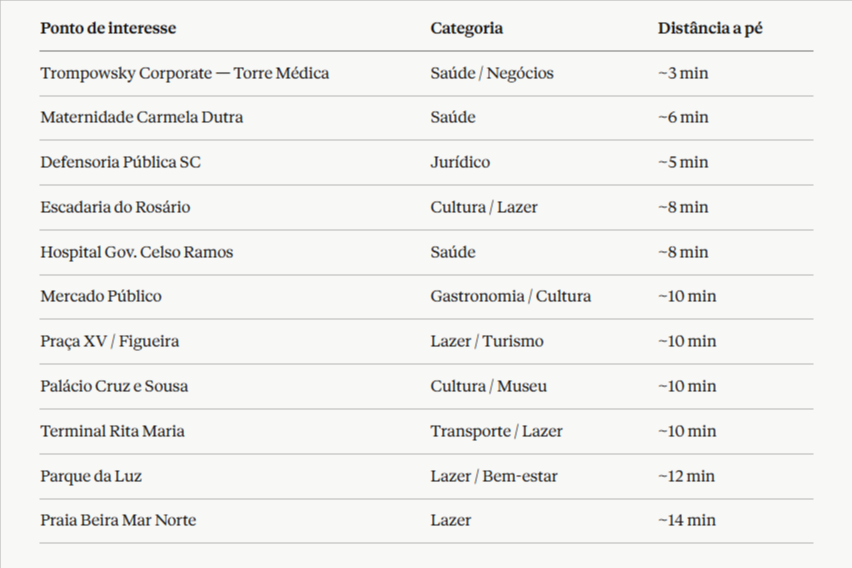 Complexo corporativo e médico com clínicas, consultórios e serviços de saúde concentrados em um único endereço. Útil tanto para quem vem a Florianópolis para consultas ou procedimentos quanto para profissionais da área de saúde em missão na capital.
