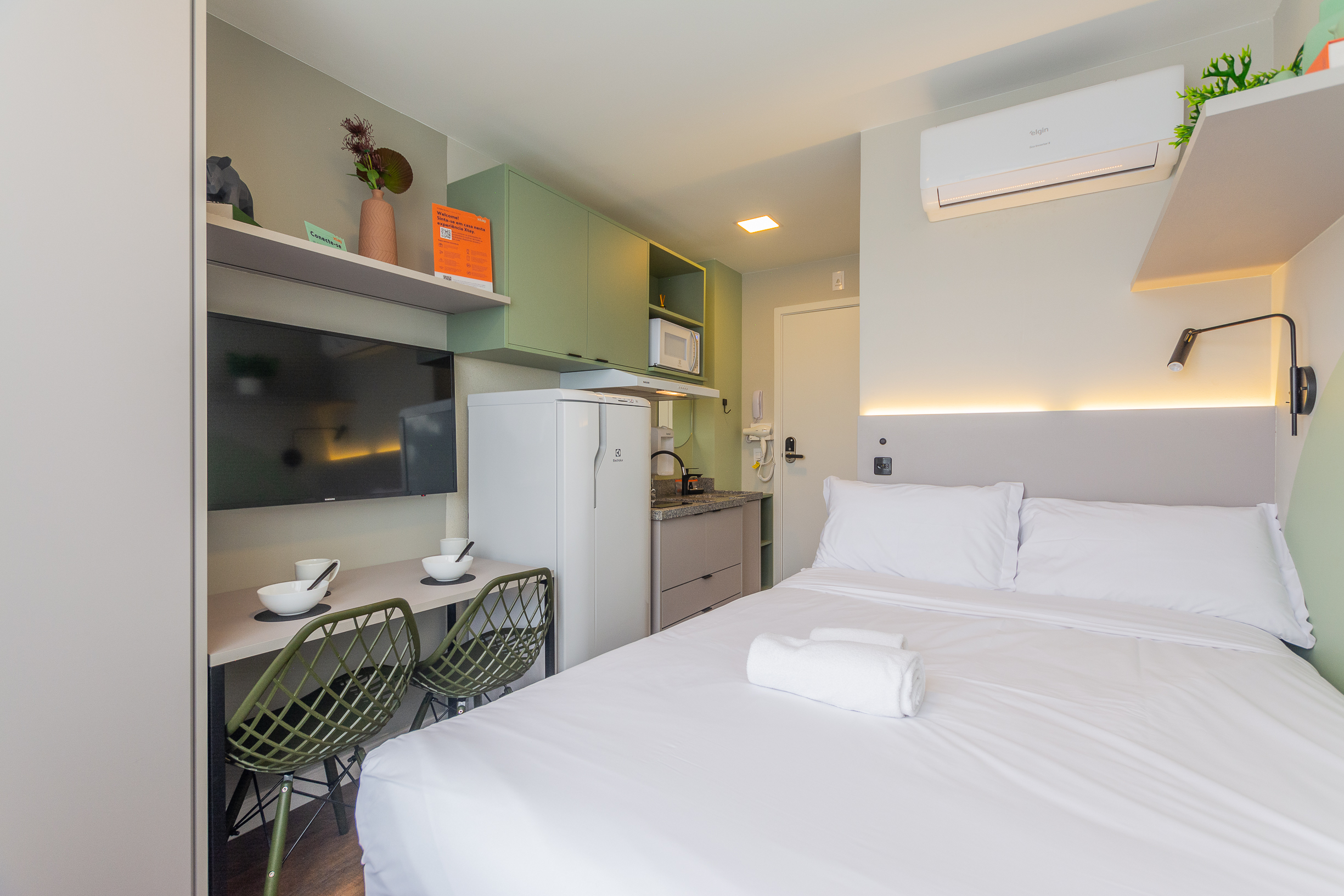 Situado no bairro Alto da Glória, o Campos Sales by Xtay oferece estúdios funcionais e apartamentos de um quarto entre 13 m² e 48 m², todos mobiliados e prontos para você viver com comodidade e estilo. Com ar-condicionado split, TV smart, internet de alta velocidade, cozinha equipada e enxoval completo, cada unidade entrega o equilíbrio entre conforto e praticidade, sem preocupações extras.